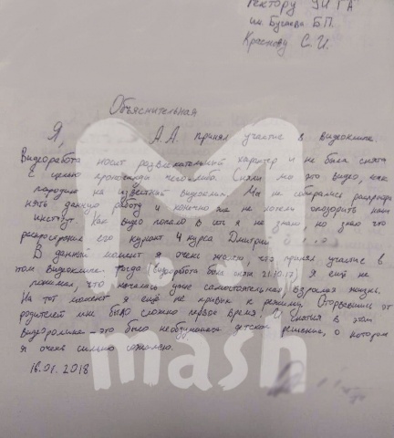 В объяснительной признается, что не думал, что последствия от видео могут быть такими серьезными. Учится на бюджете, приехал из Приморья.